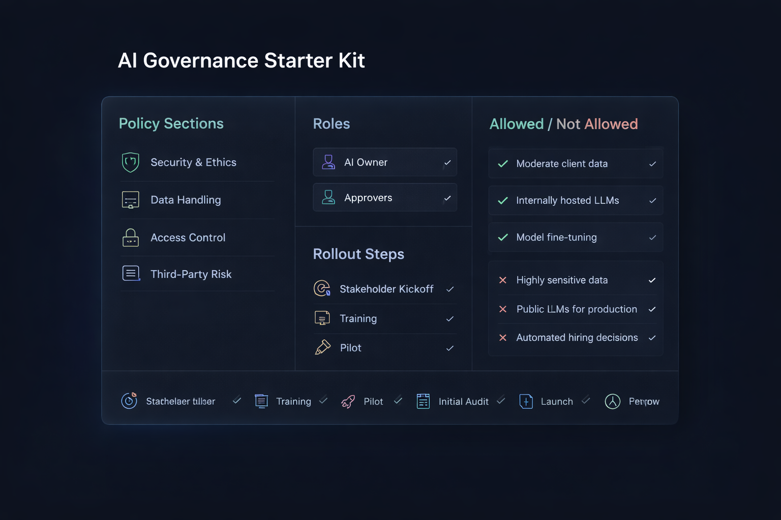 How your company decides what AI is allowed to do, what data it can touch, who is accountable, and how you reduce risk.