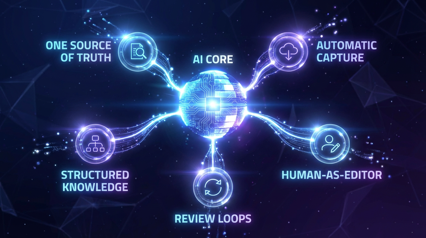 A good system feels more like a partner: it surfaces context when you need it, remembers decisions, and quietly cleans up the mess in the background. Think augmented intelligence, not replacement.