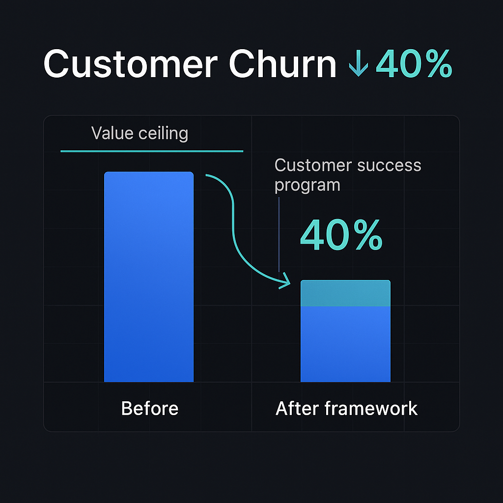 A B2B software company was struggling with customer churn. Rather than immediately jumping to solutions like "improve customer service" or "add more features," we applied our framework: